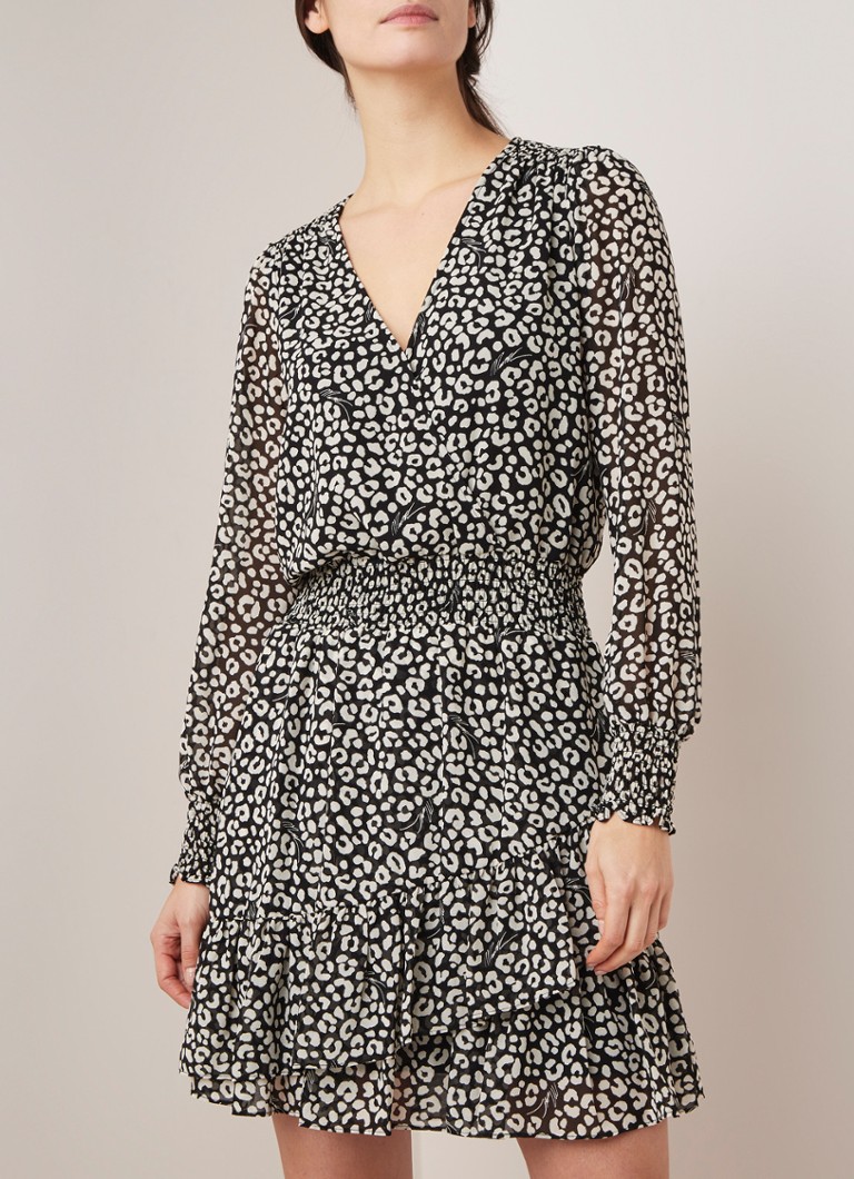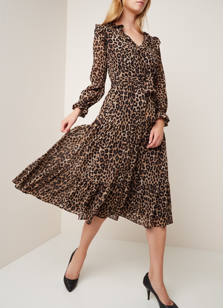 Michael Kors Midi Jurk Met Gesmockt Detail En Luipaardessin
