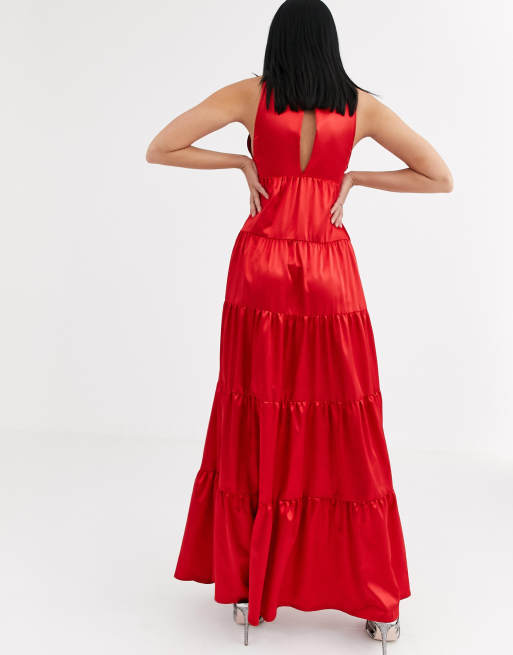 Flounce London Satijnen Lange Jurk Met Ruches Langs De Hals In