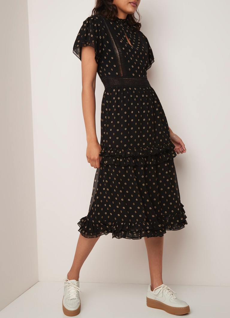 Scotch Soda Midi Jurk Met Ruches En Dessin Zwart De Bijenkorf