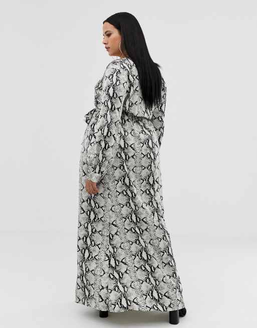 Missguided Plus Lange Jurk Met Lange Mouwen In Slangenprint Asos