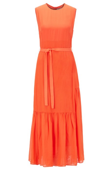 Boss Maxi Jurk Van Chiffon Met Wijde Ronde Hals En Strikceintuur