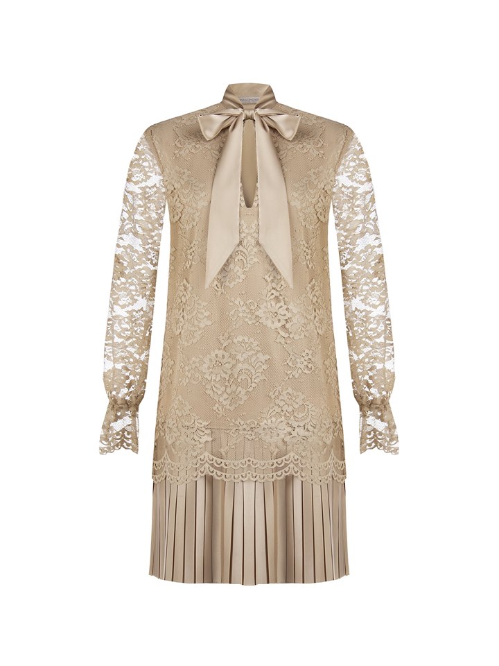 Rinascimento Jurk Goud Satijn Met Kant En Strik