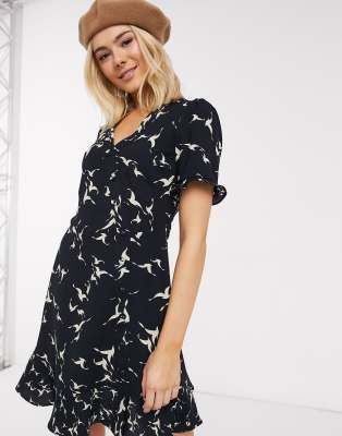 Oasis Jurk Met Vogelprint In Blauw Asos