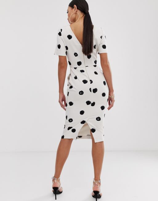 Asos Design Tall Midi Wiggle Jurk In Wit Met Zwarte Stippen Asos