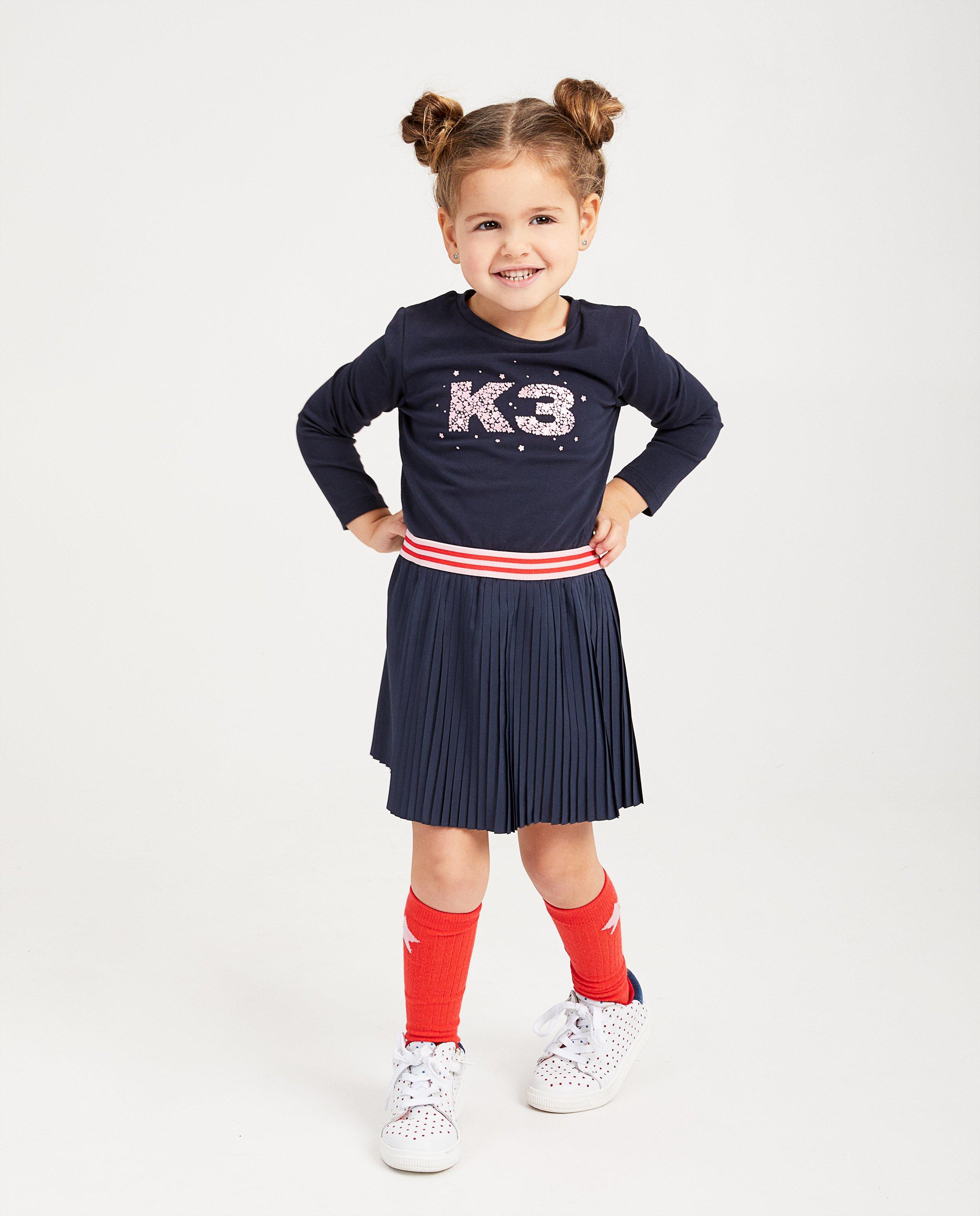 Donkerblauwe Jurk Met Plisse K3 En Glitterprint Jbc Belgie
