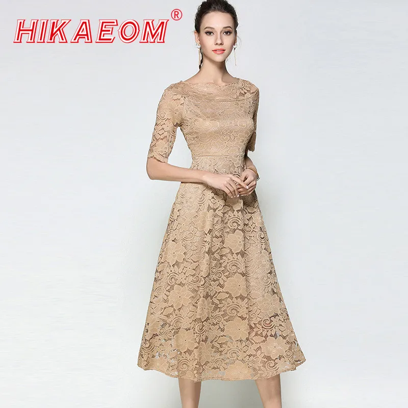 Elegante Dames Office Werkkleding Kanten Jurk 2020 Herfst Clubwear