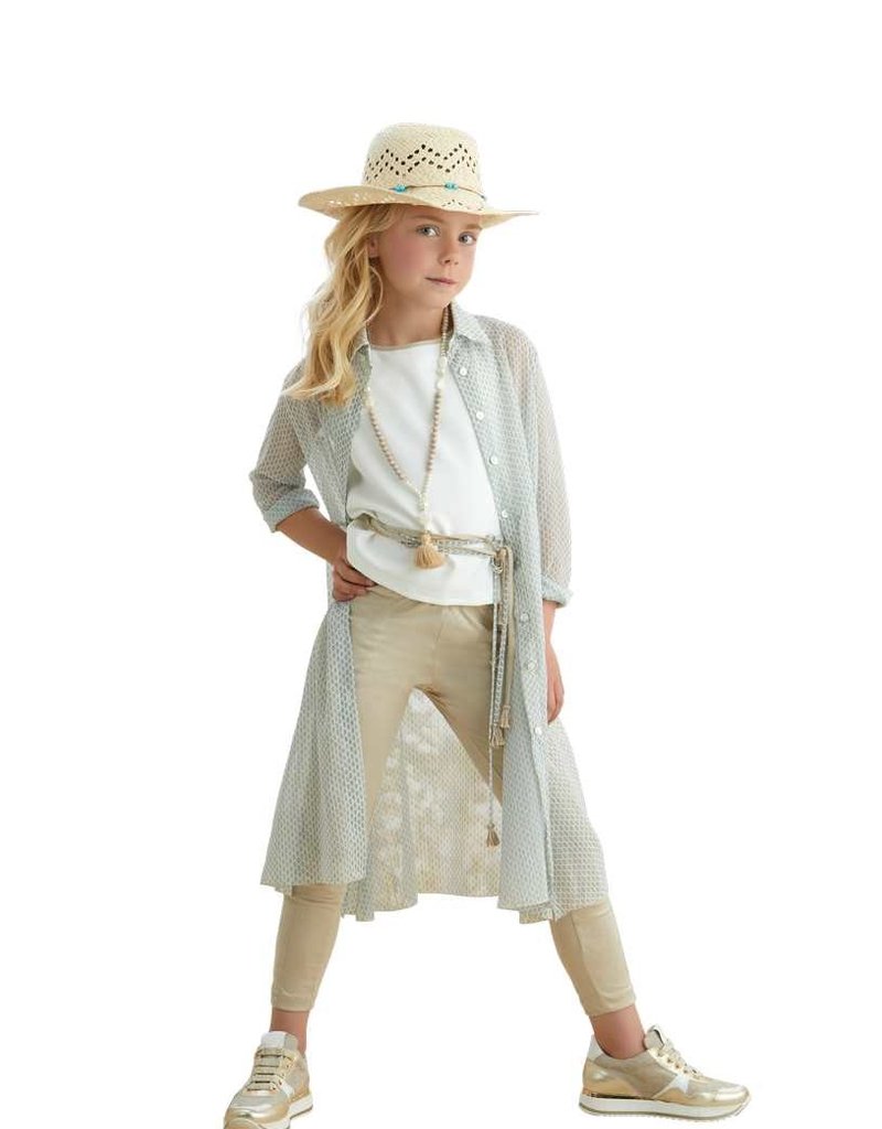 Rtb Jurk Lang Overgooier Aqua Groen Ecru Knopen
