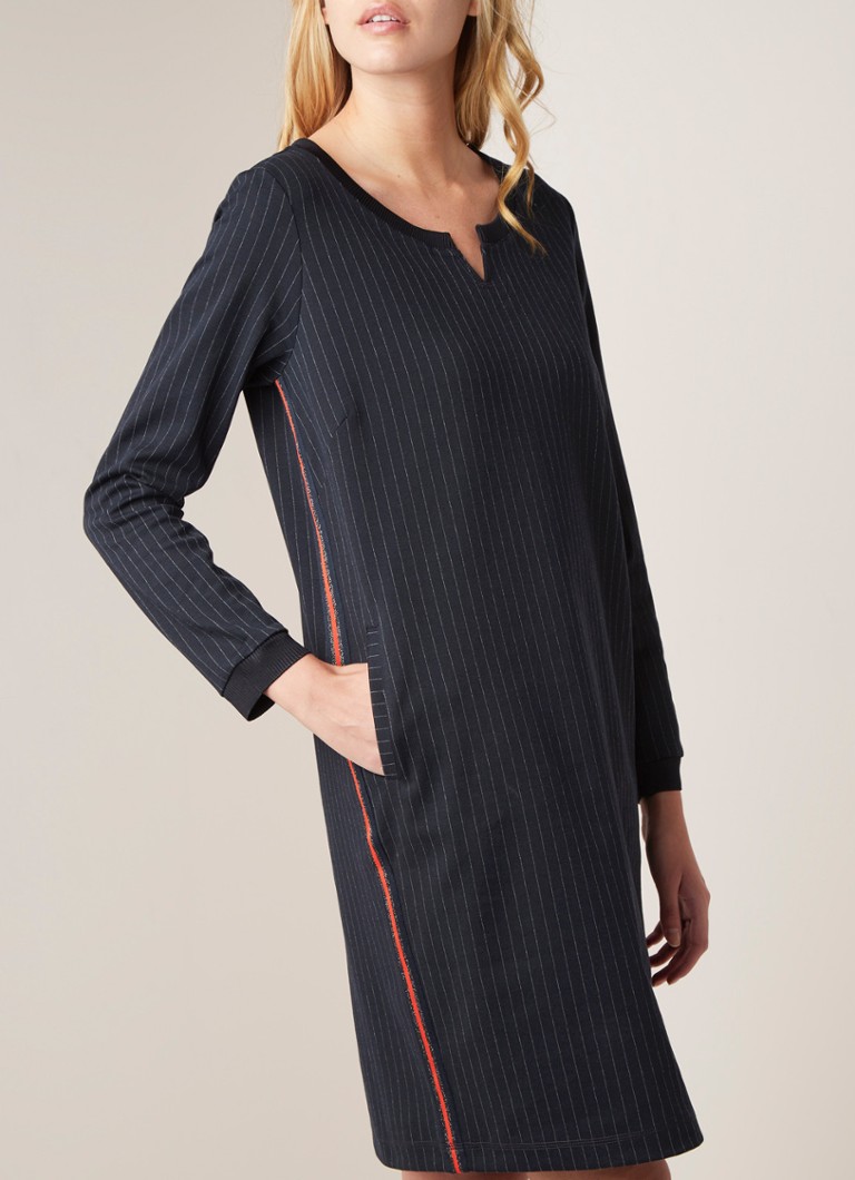 Sandwich Trui Jurk Met Krijtstreep En Steekzakken Donkerblauw