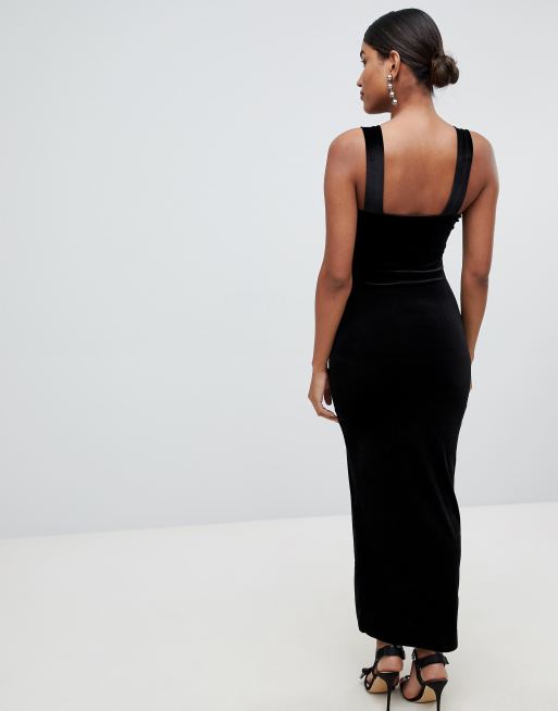 Asos Design Fluwelen Lange Jurk Met Vierkante Hals Asos