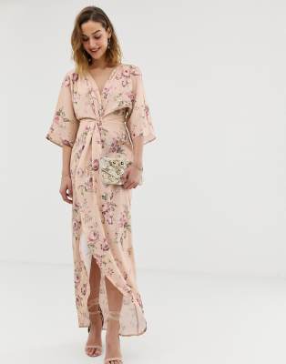 Hope Ivy Lange Jurk Met Knoop Op De Voorkant Met Gekleurde