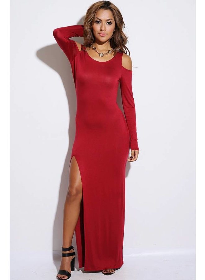 Rode Lange Jurk Met Lange Mouwen En Open Schouders Classywear