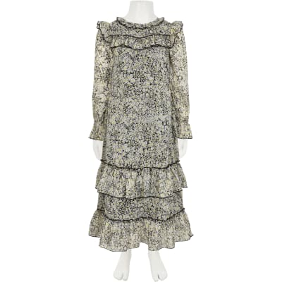 Zwarte Maxi Jurk Met Bloemenprint En Gelaagde Ruche Voor Meisjes