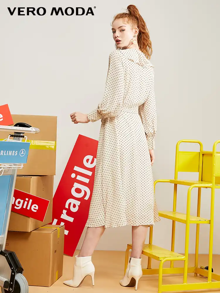 Vero Moda 2019 Nieuwe Verstoorde Print Lange Slewen Jurk 124