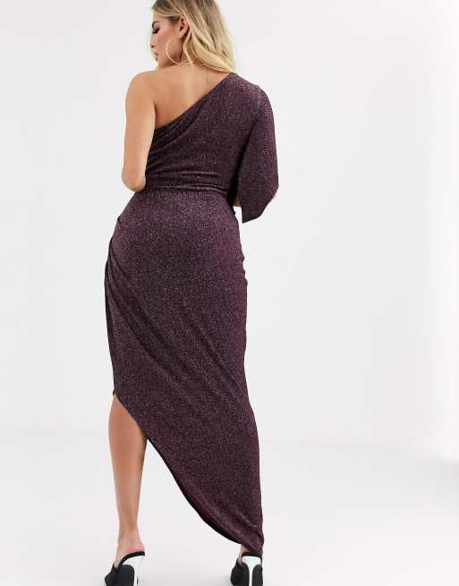Scarlet Rocks Lange Jurk Met Blote Schouder En Glitter In Paars