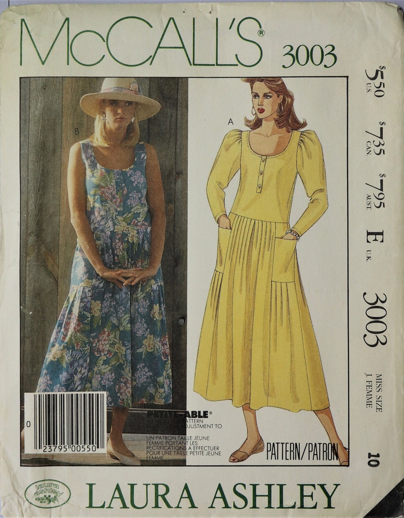 3003 Van Mccall Onbesneden Drop Taille Jurk Patroon Laura Ashley