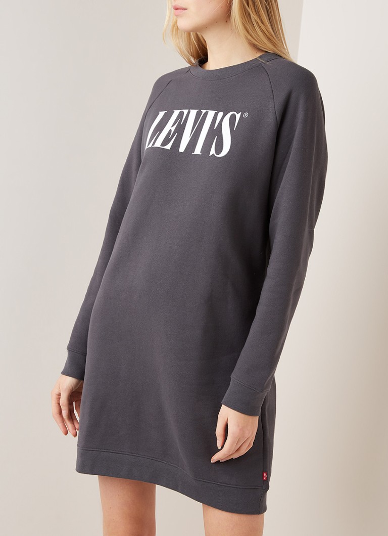 Levi S Trui Jurk In Katoenblend Met Logoprint Antraciet De