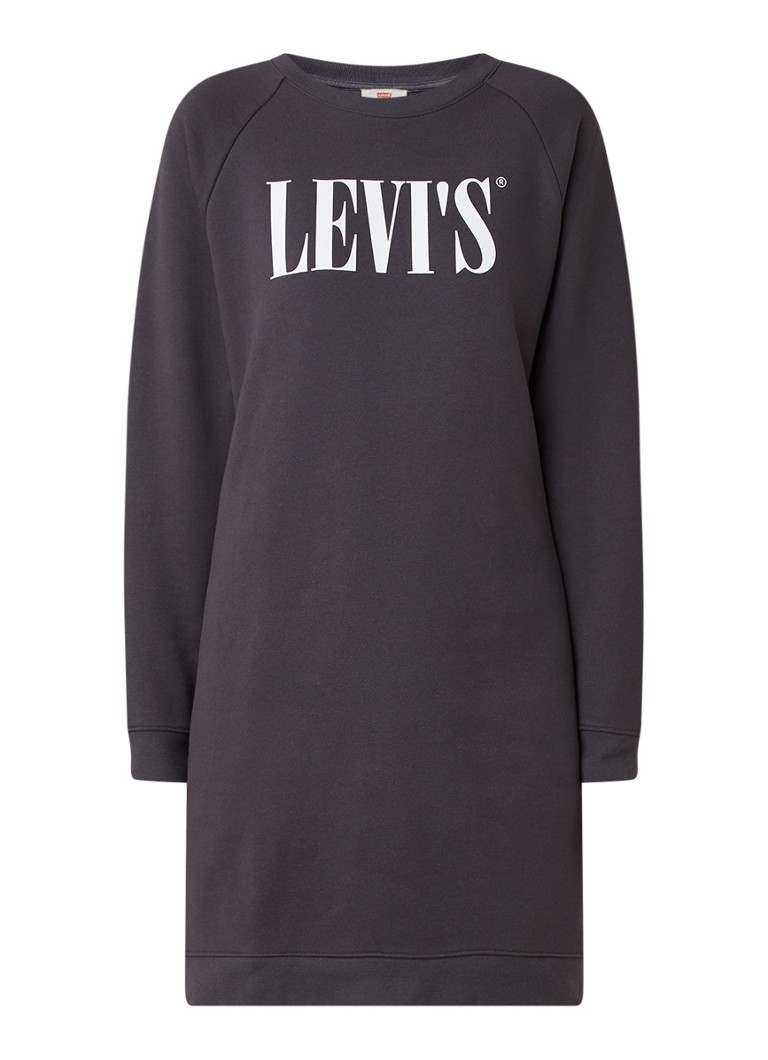 Levi S Trui Jurk In Katoenblend Met Logoprint Antraciet De