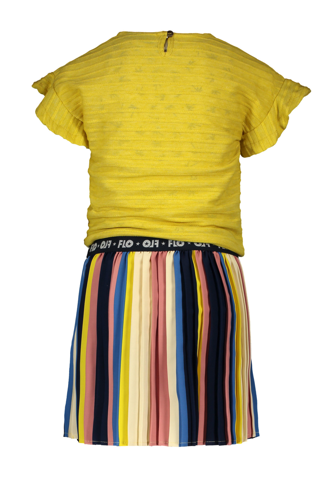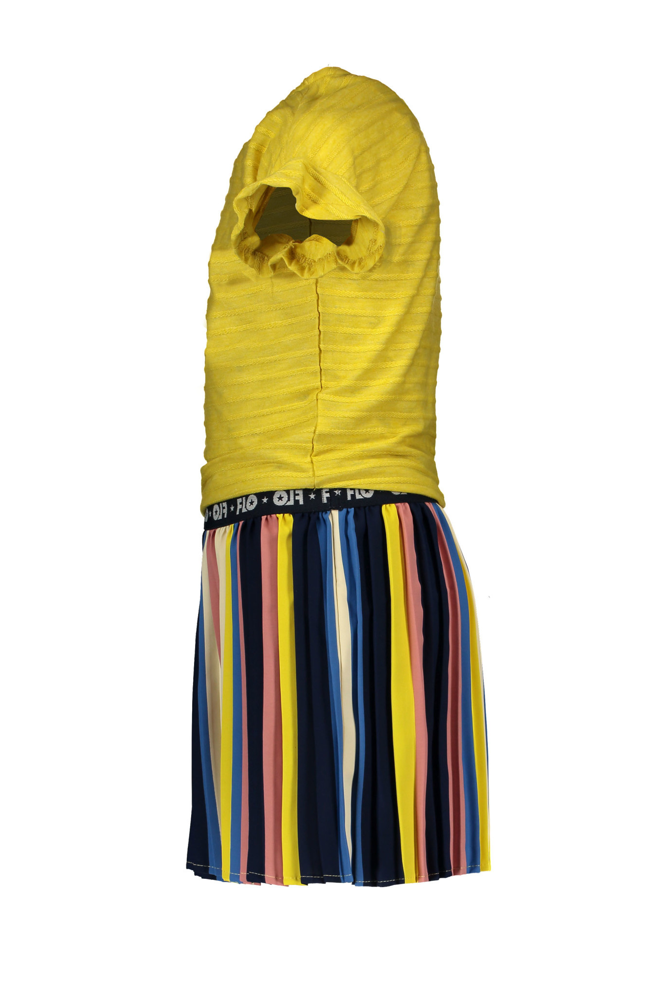 Like Flo Jurk 2pc Multi Stripe Dress With Plisse Skirt And Yellow