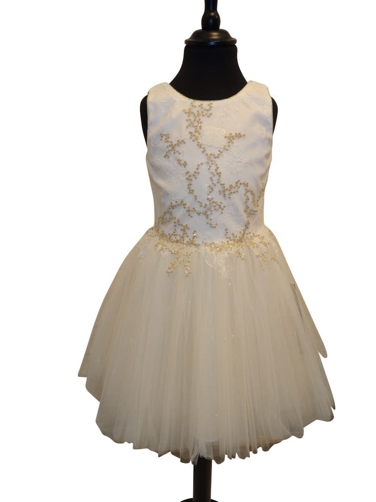Linea Raffaelli 502jurk Ecru Goud Takjes Goud Glitters Tule Onder