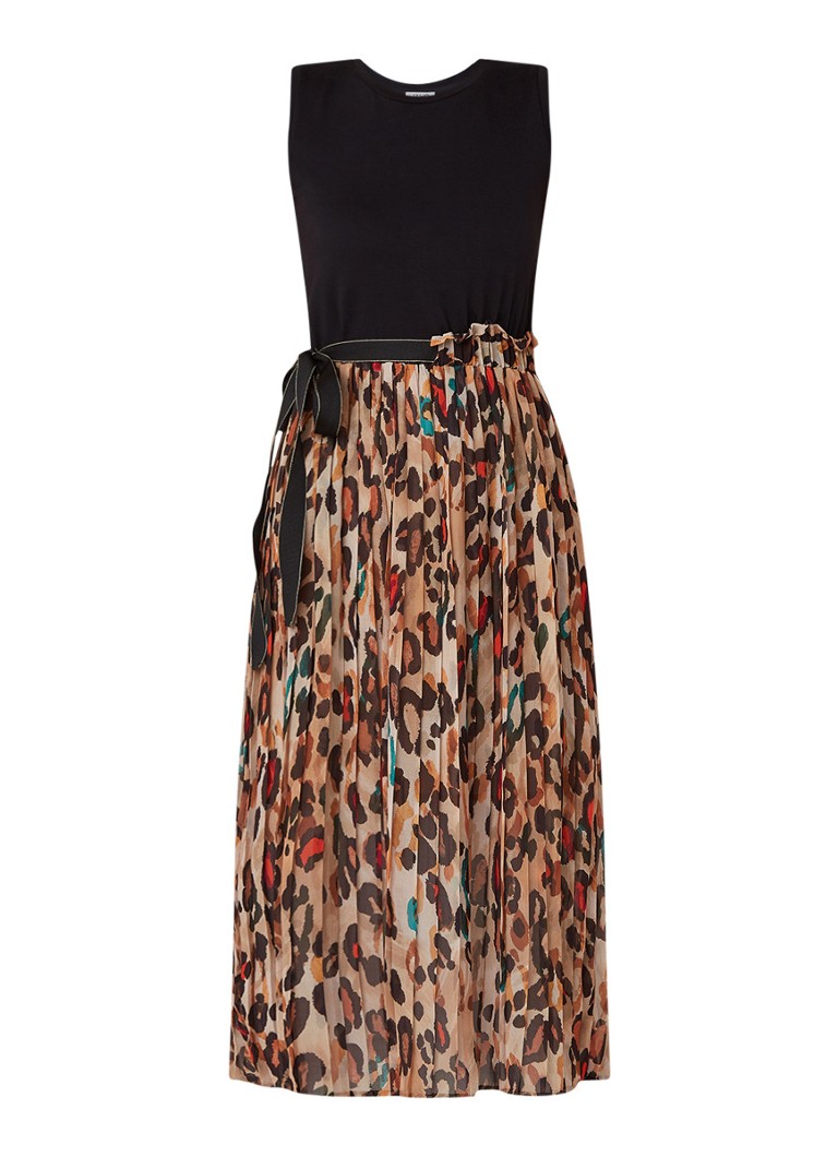Liu Jo Mouwloze Midi Jurk Met Plisse En Luipaarddessin
