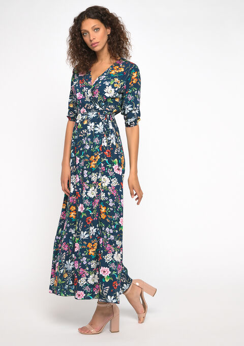 Oksel tot oksel 52cm. Jurk en sierstenen wit. Het model beschikt over een knoopsluiting. Lolaliza gebloemde semi transparante maxi jurk donkerblauw.
