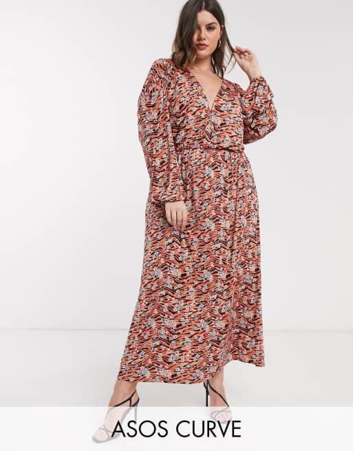 Asos Design Curve Maxi Jurk Met Lange Mouwen En Dieren En