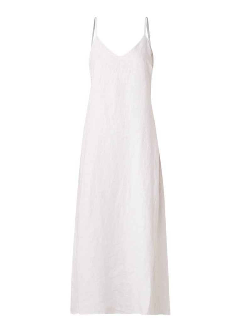 Benetton Maxi Jurk Van Linnen Met Spaghettibandjes Wit De