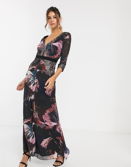 Little Mistress Maxi Jurk Met Lange Mouwen En V Hals Asos