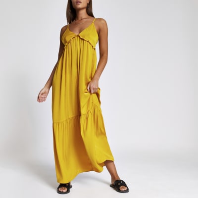 Gele Cami Maxi Jurk Met Ruches En V Hals River Island