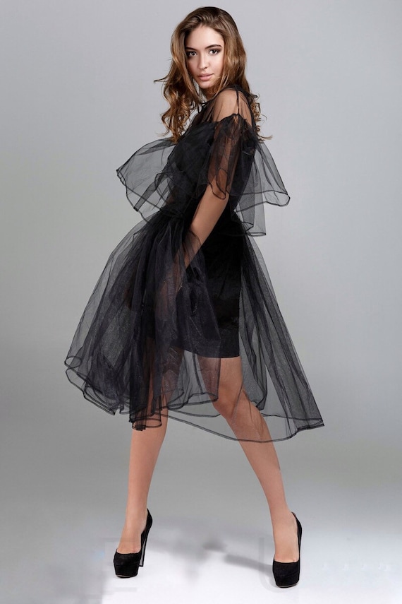 Dubbele Gelaagde Mesh Jurk Zwarte Mesh Jurk Boho Jurk Feest Etsy