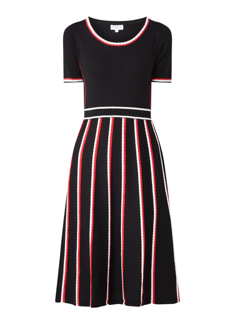 Claudie Pierlot Motoe A Lijn Midi Jurk Met Ingeweven Streepdessin