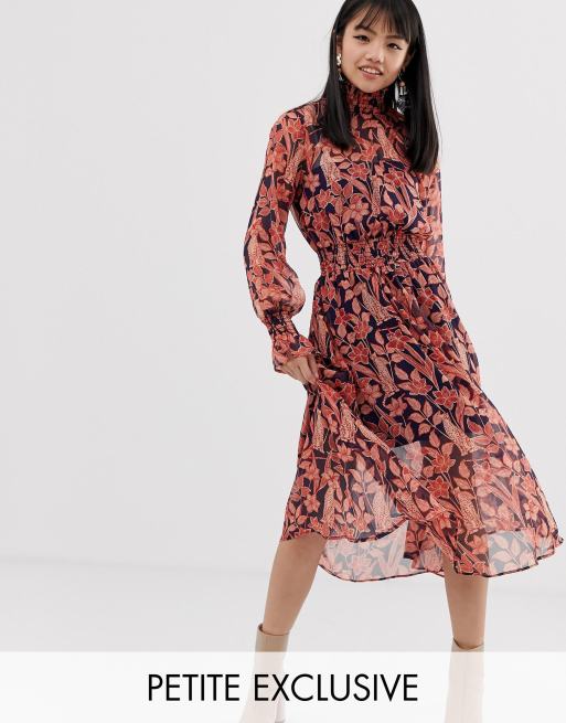 Glamorous Petite Hoogsluitende Midi Jurk Met Bloemen En