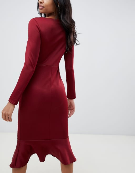Club L Midi Jurk Met Boothals En Peplum Ruches Asos