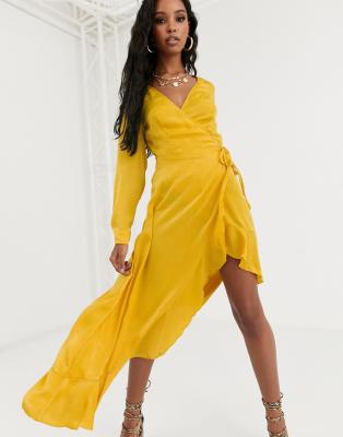 Missguided Satijnen Midi Jurk Met Knopen In Geel Asos