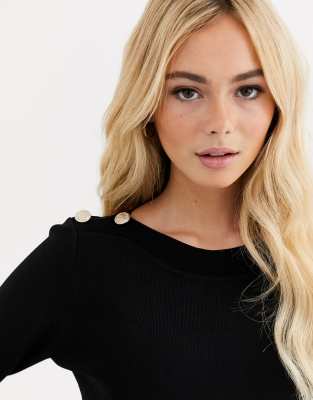 Morgan Gebreide Bodycon Jurk Met Knopen In Zwart Asos