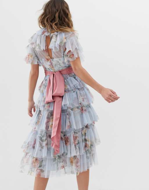 Needle Thread Midi Jurk Met Laagjes Gebloemd Tule En
