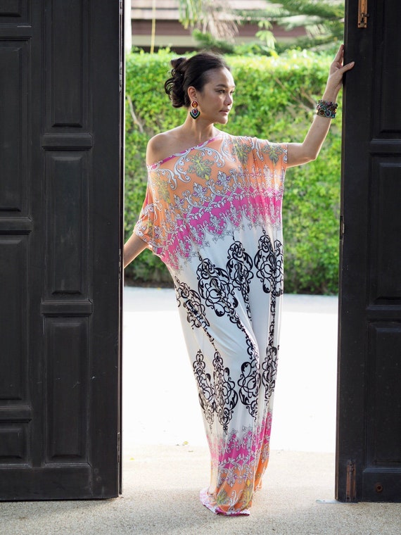 Kaftan Maxi Jurk Zoete Kleur Maxi Jurk Off Shoulder Maxi Etsy