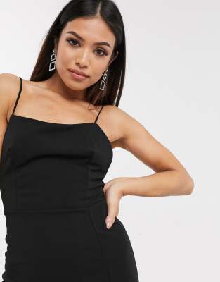 Club L London Petite Op Maat Gemaakte Lange Jurk Met Vierkante