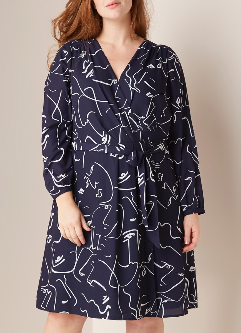 Studio 8 Tallulah Midi Jurk Met Overslag En Dessin Donkerblauw