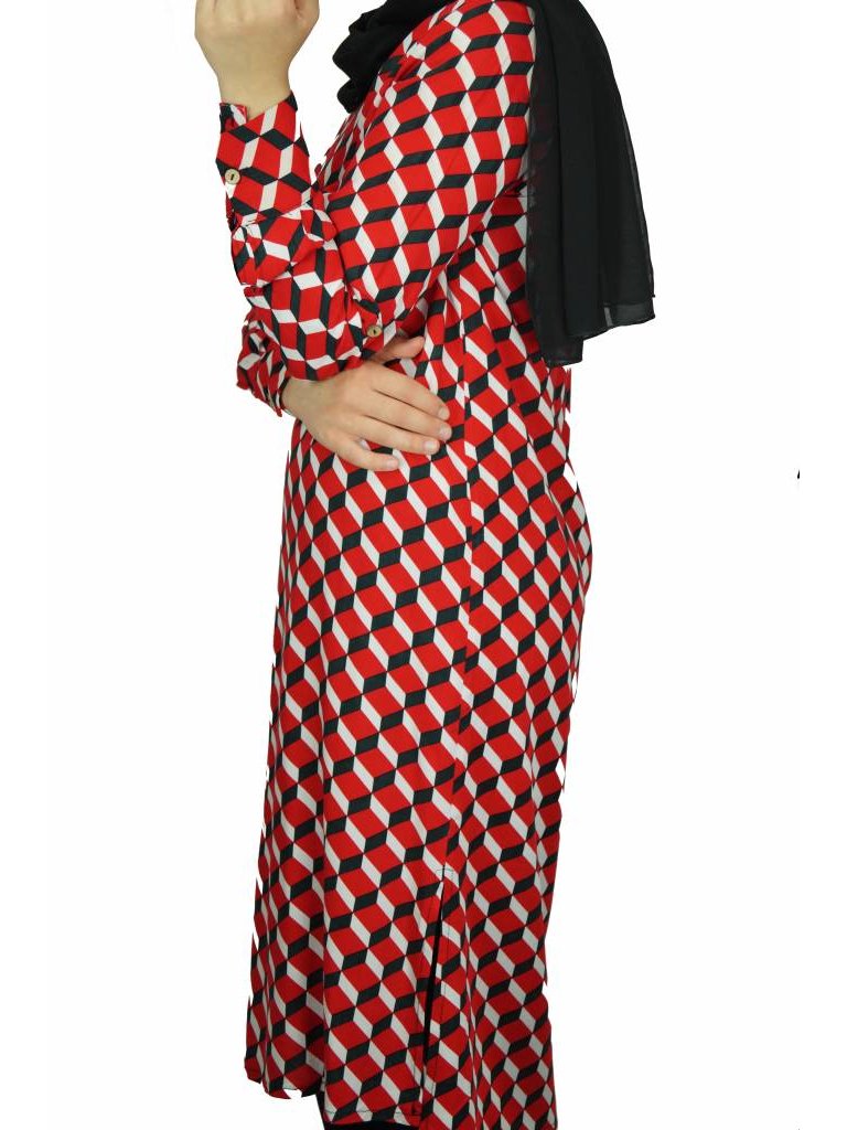 Midi Jurk Rood Met Patronen Dresstique