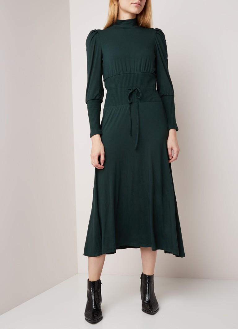 Warehouse Maxi Jurk Van Jersey Met Col En Pofmouwen Donkergroen