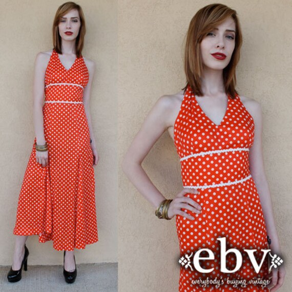 Vintage Jaren 70 Rood En Wit Polka Dot Midi Jurk Xs S Ee Jurk Etsy