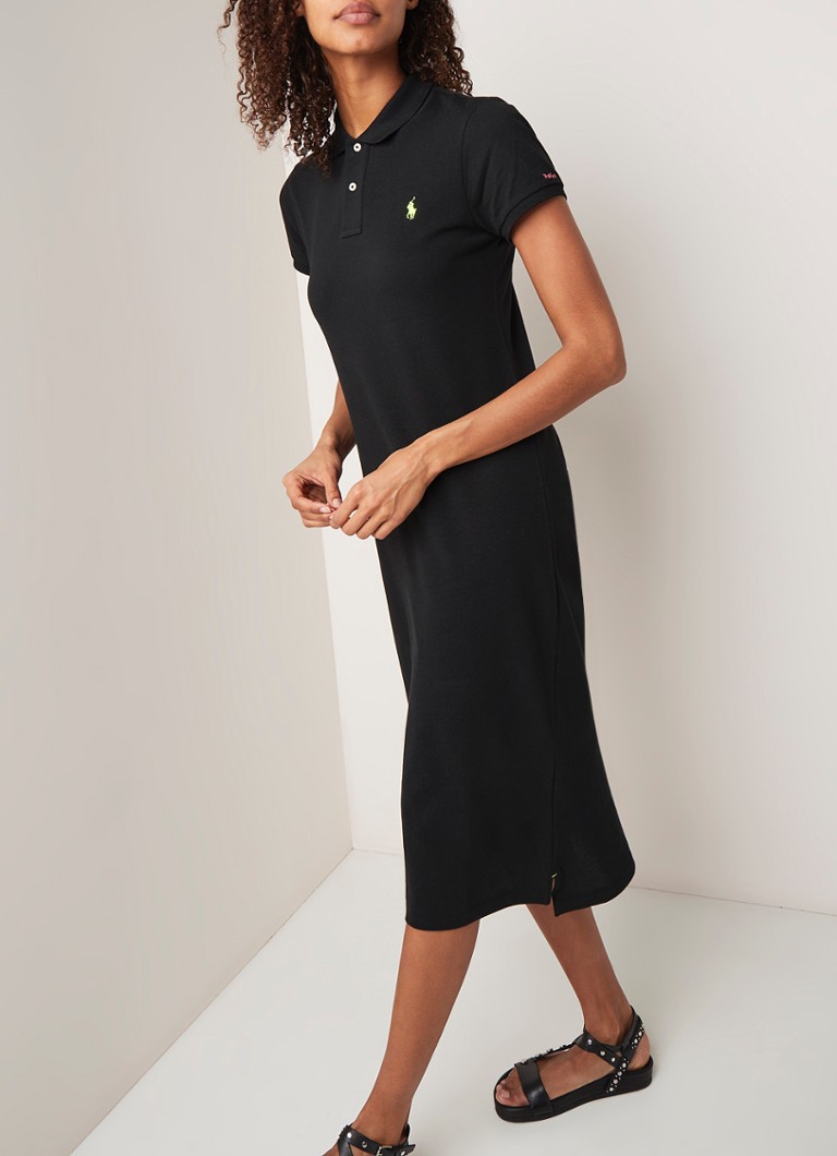 Ralph Lauren Polo Jurk Van Pique Katoen Met Logoborduring Zwart