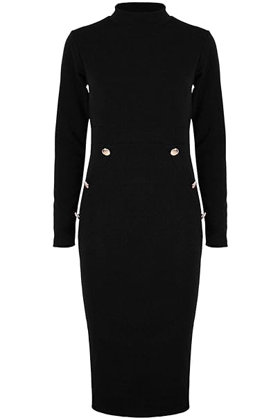 Womens Ladies Side Gold Buttons Polo Turtle Neck Long Sleeve