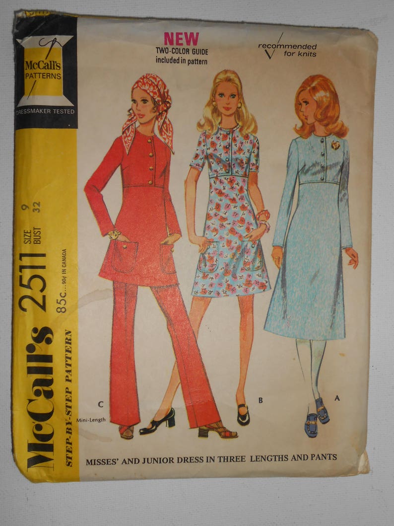 Vintage 70s Rijk Hoge Taille Tuniek Jurk Patronen Rechte Been