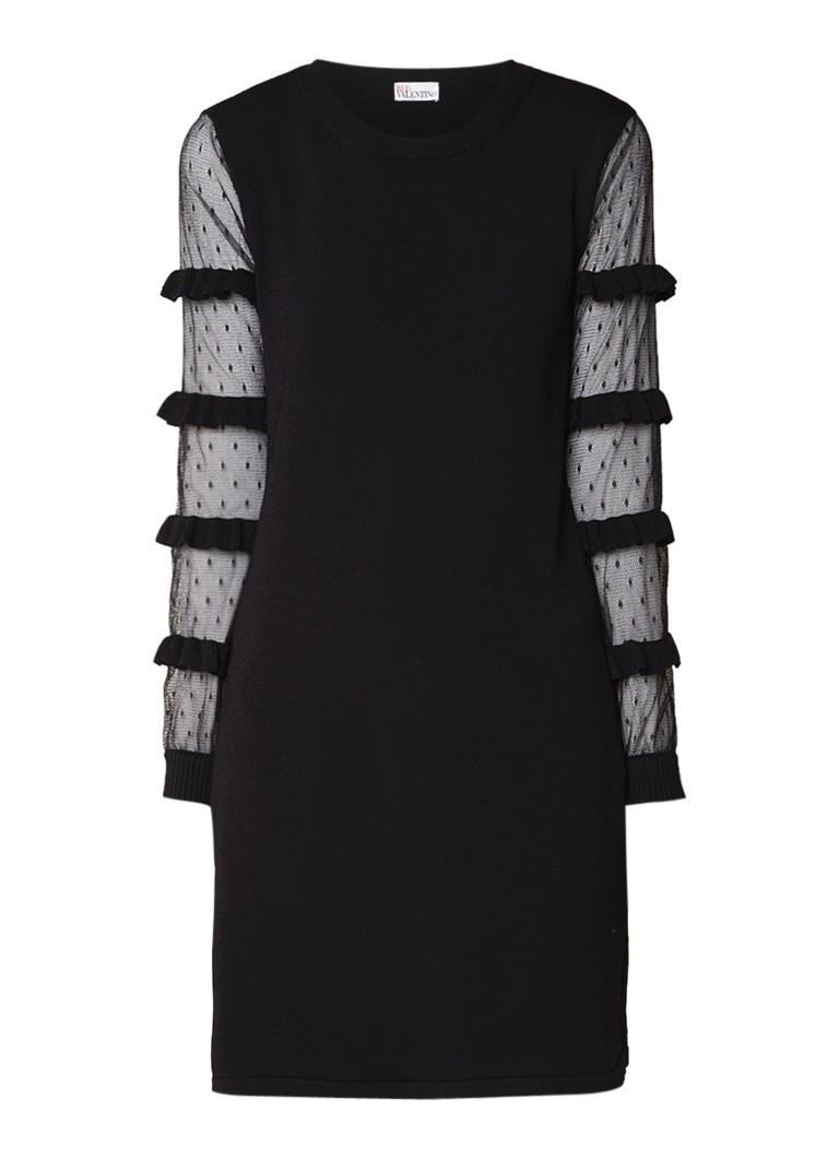 Red Valentino Fijngebreide Jurk Met Mouw Van Gestipt Tule Zwart