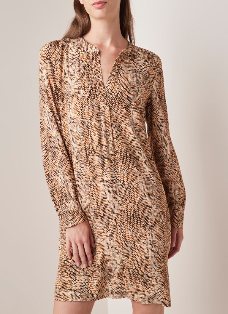 River Woods Midi Jurk Met Slangendessin En V Hals Lichtblauw