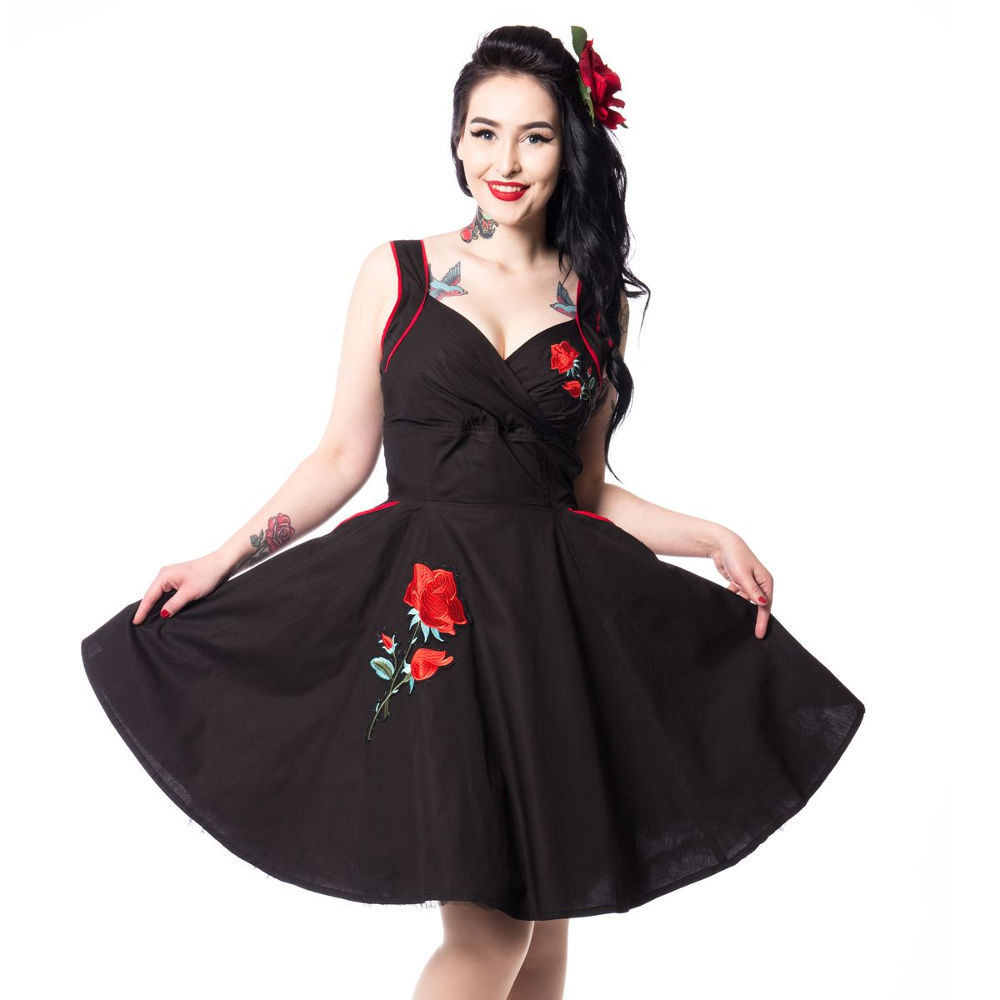 Vixxsin Marianne Jurk Met Geborduurde Rozen Zwart Vintage Rockabilly
