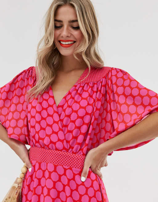 Twisted Wunder Lange Jurk Met Ruches En Roze En Rode Stippen