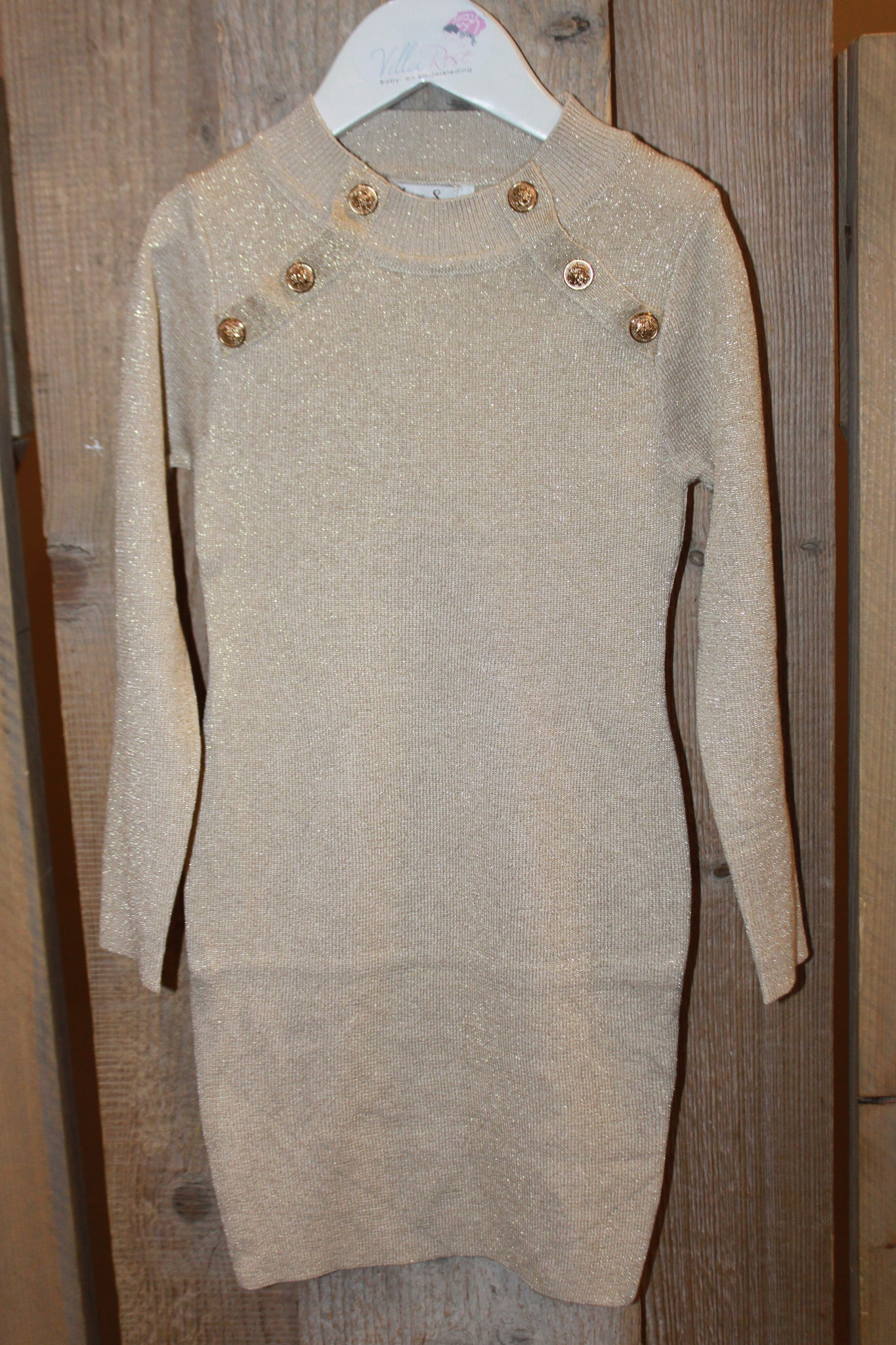 Villa Jurk Goud Glitter Gebreid Met Gouden Knopen Villa Rose